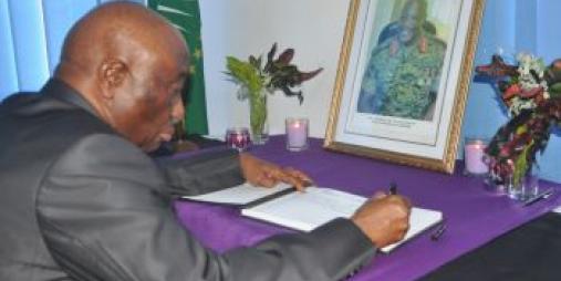VP Boakai Leads GOL Officials to Sign Book of Condolence for Fallen ASEOWA Major General Julius Oketta