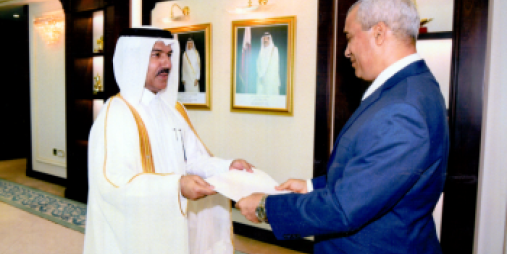 Ambassador Ballout presenting his Letters of Credence to the General Secretary of the Ministry of Foreign Affairs of the State of Qatar, H.E. Dr. Ahmed Bin Hassan Al Hammadi